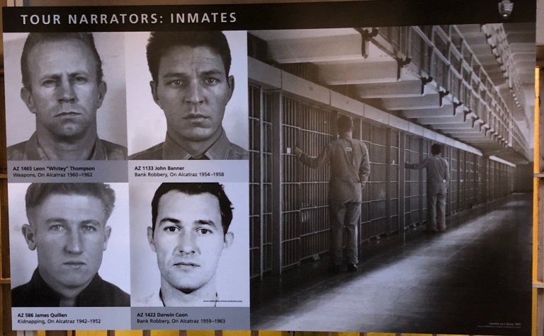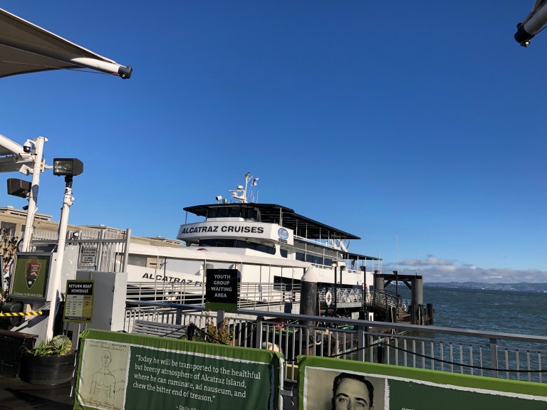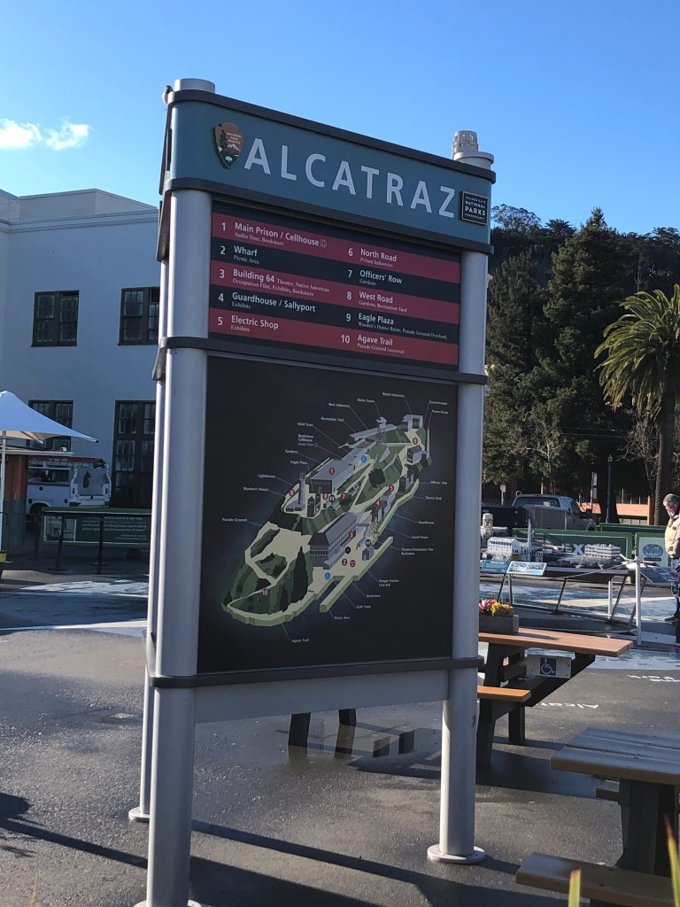 Then we all rush around to eat breakfast and gather to get off the ship, go through custom (especially stringent) and board the bus to take our tour. The bus literally makes the (very) short drive from pier 27 to pier 33 so we can board a ferry to Alcatraz island. The Golden Gate Bridge and Alcatraz are all part of a National Historic Park. Very well organized and run, and one of the best interpretative tours we’ve experienced.