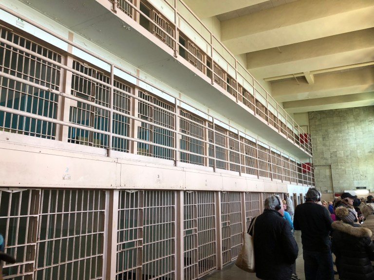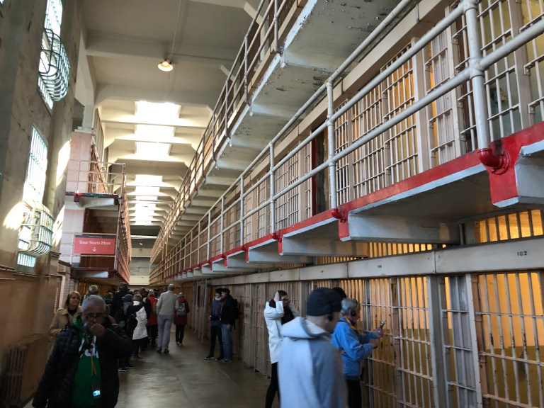 Once you’ve arrived on Alcatraz island, you climb the long road up to the prison area. There is an excellent audio tour narrated by original guards and prisoners. I would highly recommend this tour if you ever find yourself in San Francisco for a couple of days. The ferry ride is maybe 15 minutes, the tour is a couple of hours and then you board the ferry back. Tickets sell out so plan accordingly!