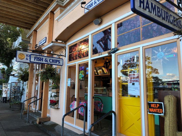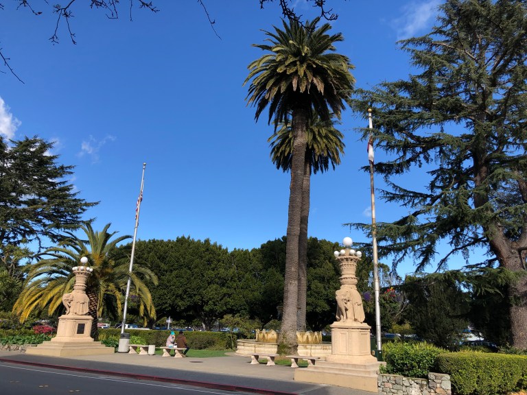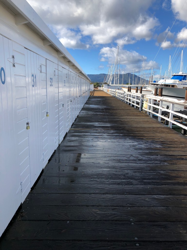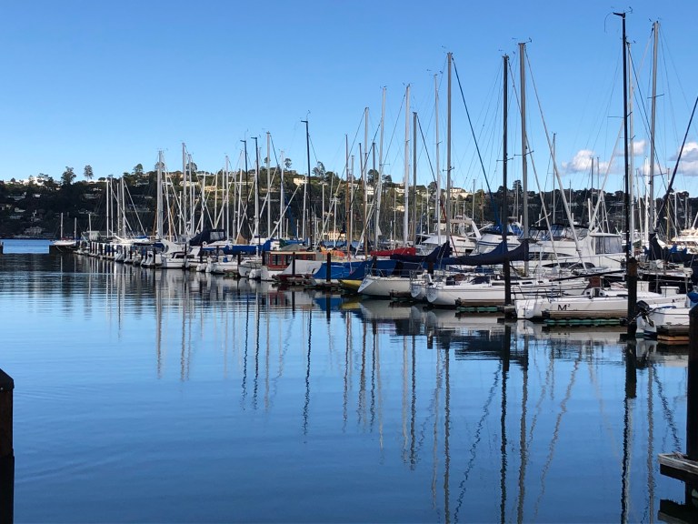 When we arrive back on shore, we board our bus again to go across the Golden Gate to Sausalito, a quaint village opposite San Francisco. The town was a place where people went on weekends to sail and enjoy some sun in the summer when the fog is really heavy in San Francisco. Sausalito has an interesting history too. This is where Liberty Ships were built during World War II and people lived in houses built on boats during this period. There are some beautiful homes nestled in the hillside but the sun is way too bright to capture good pix. The marina is filled with lots of sailboats resting quietly. Beautiful white lockers line the boardwalk. We have time for a walk around the town and marina, have lunch at a small cafe and then get back on the bus to go ‘home’ to our ship.