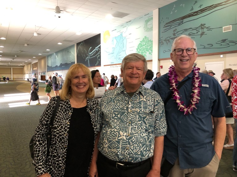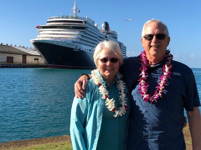 The ship pulled into the harbor Pier 2 and our friends met us in the terminal and presented us with beautiful leis. Then we walked to their car and we were able to take a great picture of our ship.