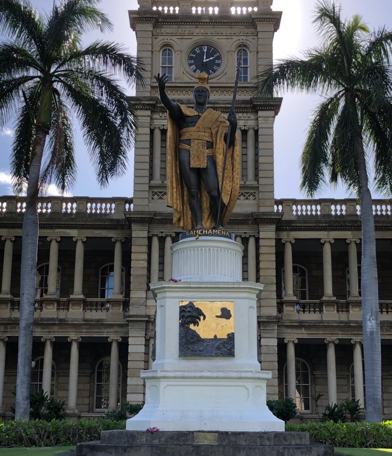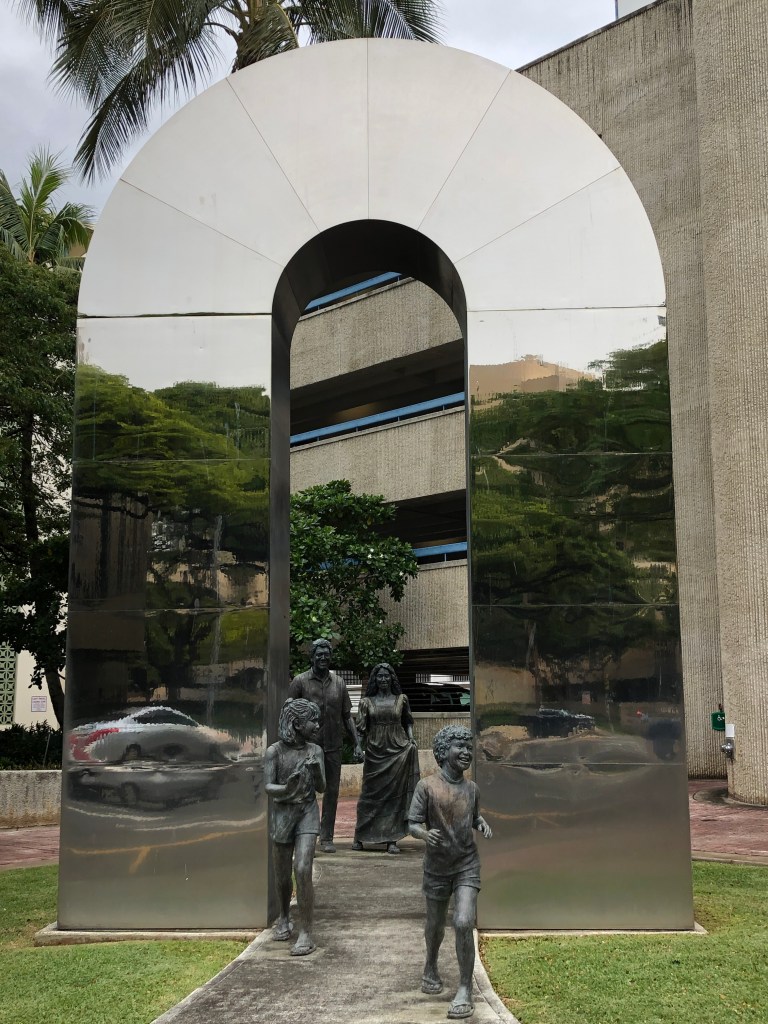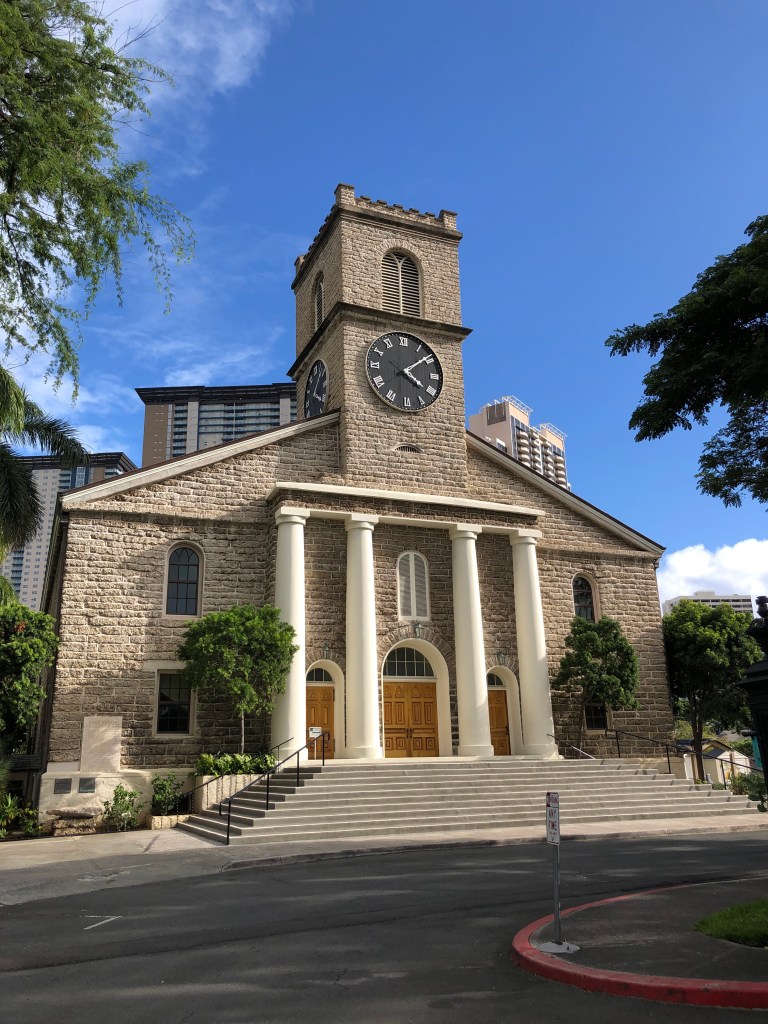 After they dropped us off by the Aloha Clock Tower, we explored the downtown area. A stop at the Iolani Palace and statue of the last King, then to the nearby judicial building and the Protestant church.