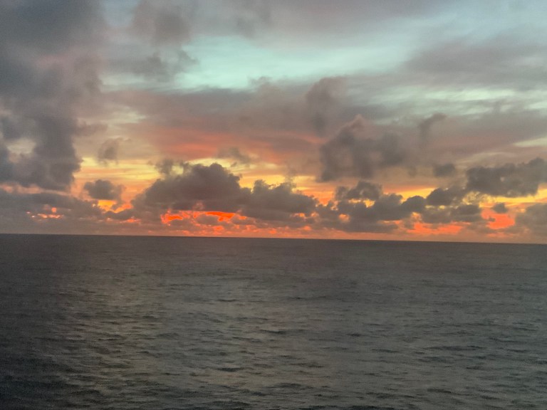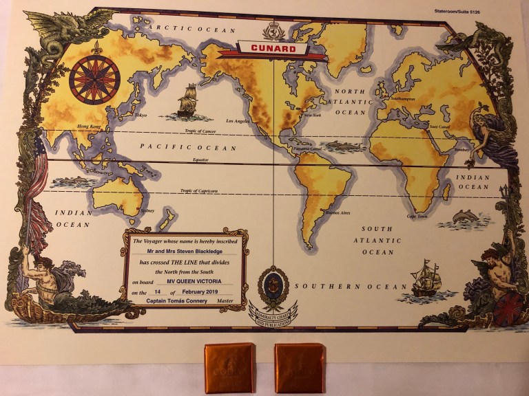 While we are at sea for two more days, the calendar says three days. However, we cross the International Date Line today and when we wake up tomorrow we will have skipped February 15. A funny phenomenon of our imaginary concept of time. Oh, BTW – Happy Valentine’s Day to all our family and friends❤️💕❤️