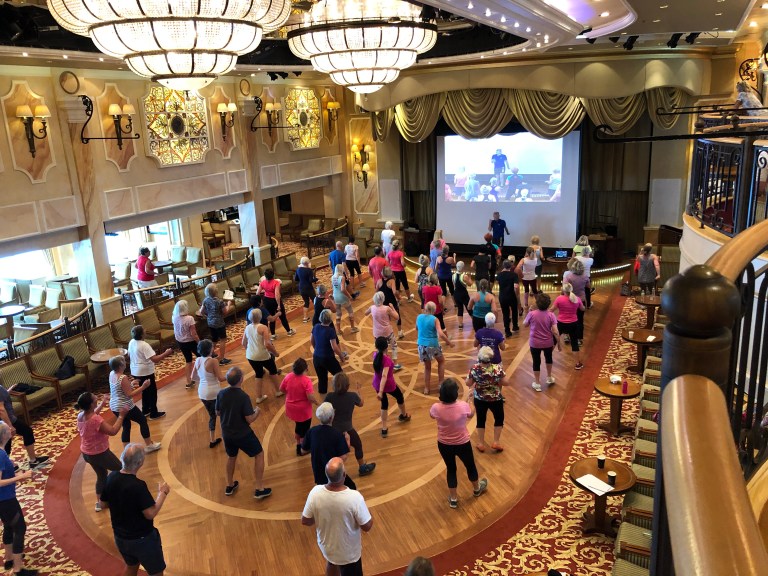Meanwhile our two days at sea, spent reflecting on being gone one month and reading books that cause reflection! Then there are other activities – Zumba class (just observers), a latte in the coffee shop (where they have a sign on every table with a city and drink), watch a movie “Bohemian Rhapsody” and then attend a concert by a choir created from members traveling on the ship – over 100. And of course, lectures LOL