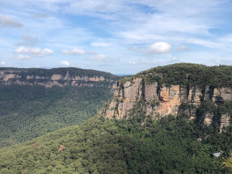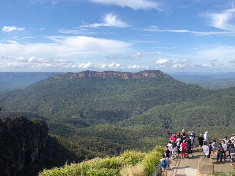 First stop is Echo Point for a breathtaking view of the Three Sisters Rock formation, Mount Solitary (flat on the top) and overlooking the Jefferson Valley.