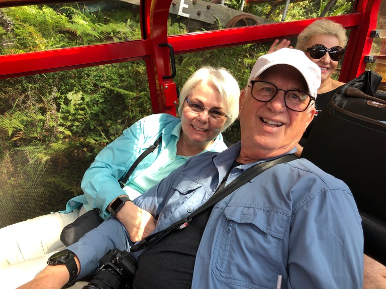 Finally we cross over the valley near a water fall (almost dry from the drought) in a Skywalk Way Cable car.