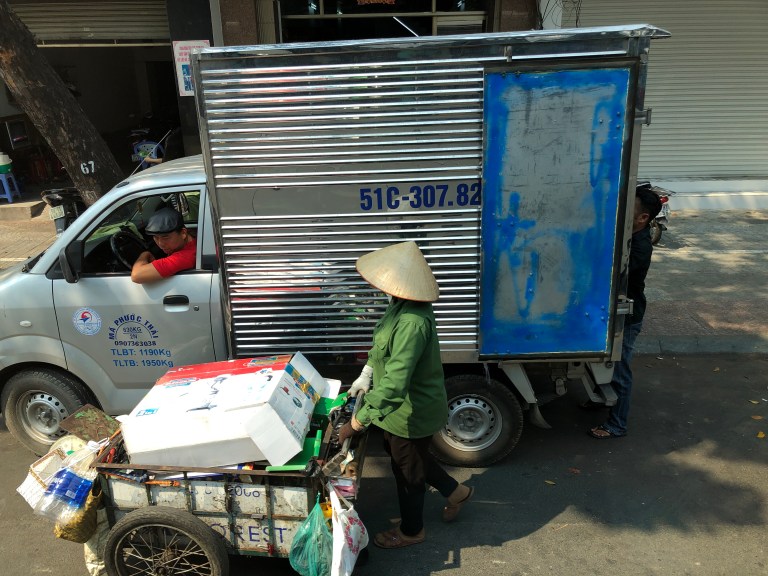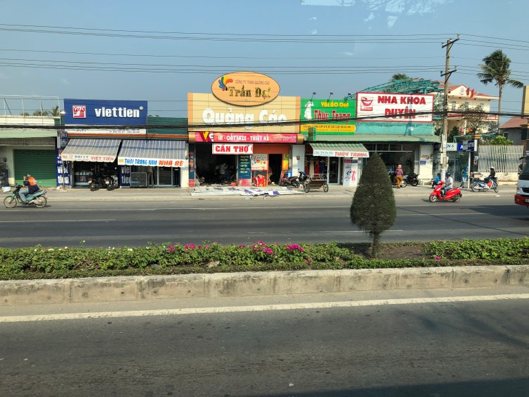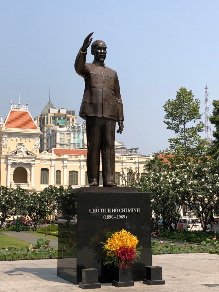 Our tour guide is Vu and our driver is Ting. The tour guide is young and very good English and westernized lingo. For example he says when we see the traffic we should say OMG. Two seasons – wet and dry. Typhoons every year an average 5 a year in this region but rarely reach Saigon. “Since we have one political party – nothing is free.” School costs money so some can go by working for their entry fees. Others go to the private schools run by different countries and they cost ‘millions of Vietnamese Dong. They have income tax about 10% on anything more than $10M Dong. They have to pay for health care. Most have no pension so three generations live together.