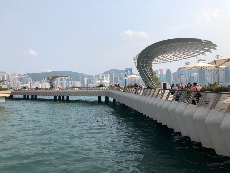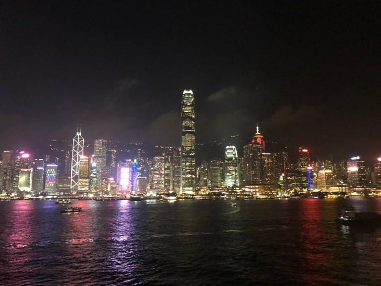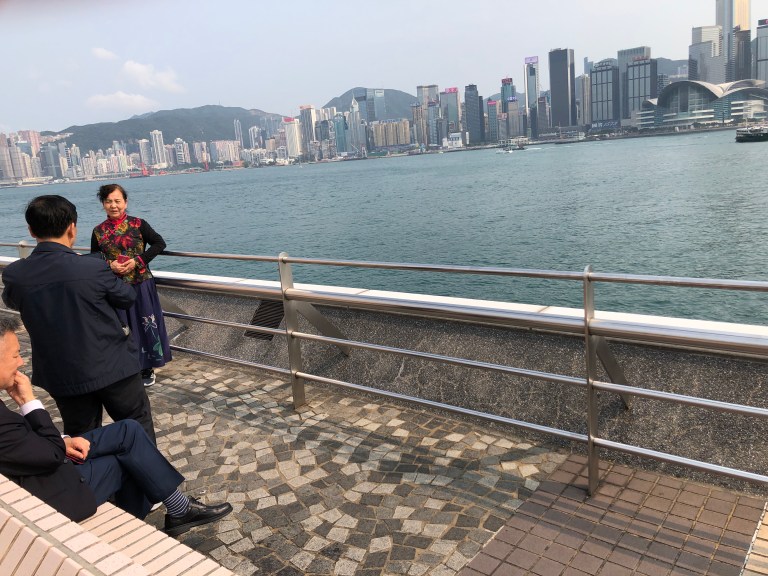 After our afternoon walking tour and a huge lunch, we took a walk on the Kowloon promenade. This is THE place to see the Hong Kong Island skyline, have your picture taken and also watch the night light show. The famous clock tower is still there, right near the ferry terminal.