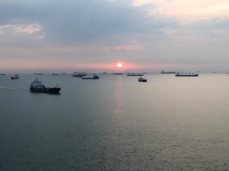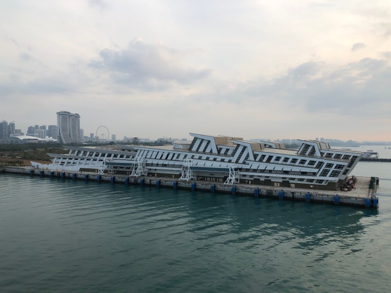 Singapore – a country and a city sitting on an island off the tip of Malaysia’s peninsula. This is also one of the busiest shipping areas in the world. There are ships anchored waiting to get into port to either drop their shipments or pick up more containers. In fact we are awakened this morning by the smell of something burning when in fact it is the smell of all the ships engine smoke as they sit in the Singapore Strait.