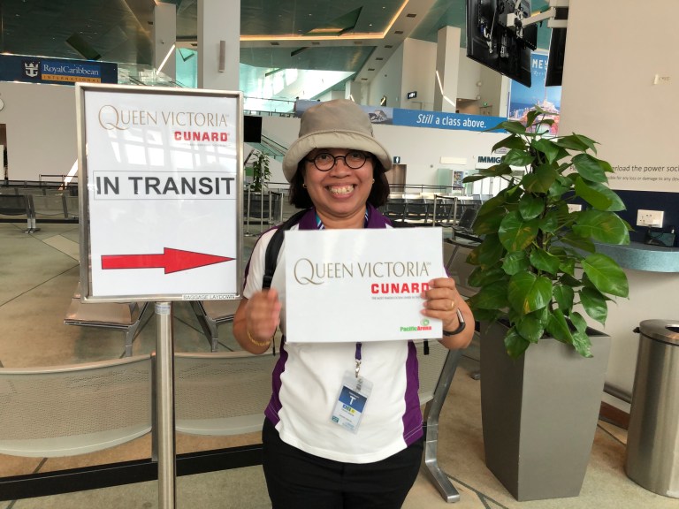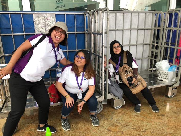 We are now quite warm from the walk and take a taxi back to the hotel. As I get through the security I realized I do not have my phone.π± An amazing woman who is working for the Accoulade Company sets out to help me find my phone. A Good Samaritan who got in the cab turned it in to the taxi driver who saw the phone number that had called and called back. YAY! The taxi driver brings my phone back (I’m paying her dare and she doesn’t want to take it!) and this is all thanks to the wonderful women working to help the Cunard cruisers find their way back. Here are all my Singapore angels!