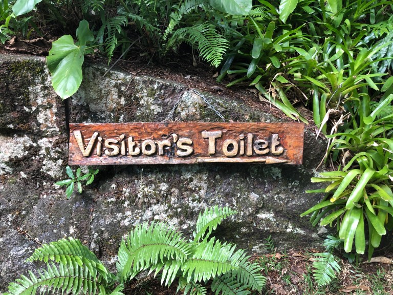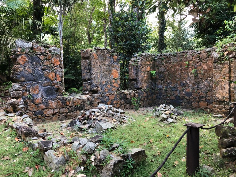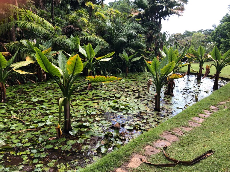 The Botanical Gardens contain many “Florida plants.” However, there is the amazing Coco de Mer tree – it has the largest nut on the planet. The gardens contain usual flowers (hibiscus), but also plantings you don’t see very often. A Chinese garden and statue tucked away from the main area – for whatever reason. Lilly pad pond with trees – unusual. Of course I always follow the last sign wherever I am.