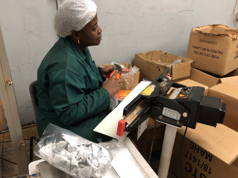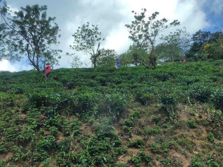 When we depart Venn’s Town, we drive by a tea plantation with people in the field, harvesting tea leaves.