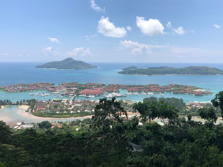 As we enter the port, we see the beautiful forest-covered mountains of the island appear, dotted with homes and wind turbines. Port Victoria is everything to this country – all tourists and goods come in here. It was built in 1973 and the international airport (of one runway) was built in 1972.