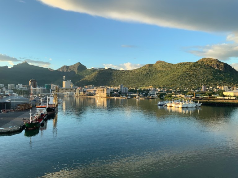 Another early morning docking in a commercial-type port, Port Louis, Mauritius. A remote island in the Indian Ocean near Madagascar and just north of Reunion where our ship will take us tomorrow.