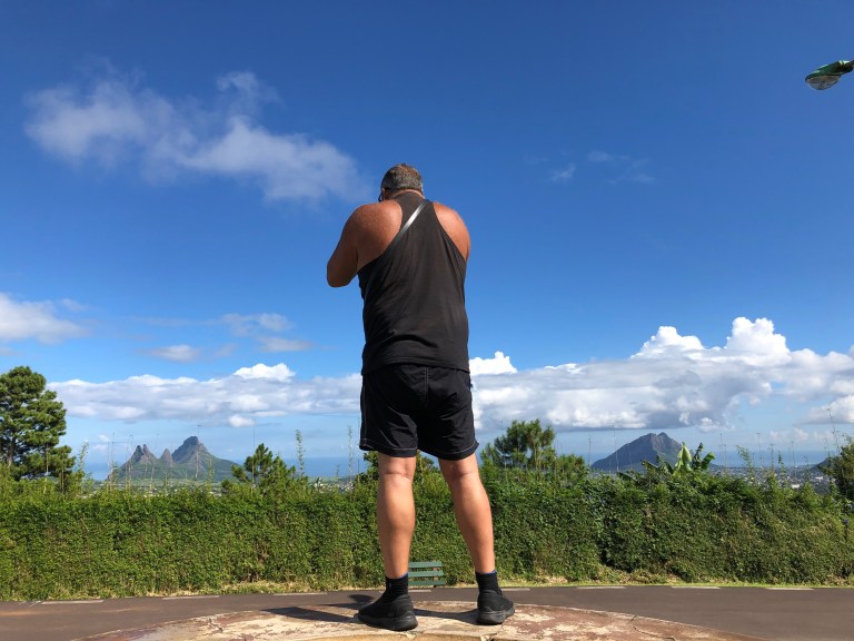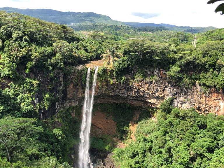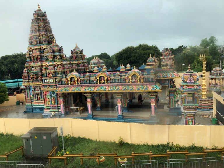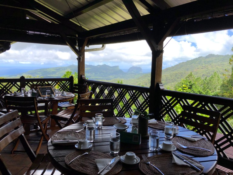 This island turns out to be a gem (as always photobombers!). Our tour takes us to their National Park and to various scenic areas, quick view of another Hindu temple and a lovely lunch (Indian curry and a vegetable dish called Chou Chou, made out of Chayotes, I think) in a restaurant on the side of a mountain. It reminds both of us of Hawaii and the Caribbean islands made of Volcanoes.
