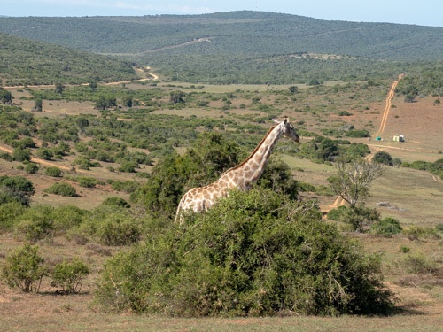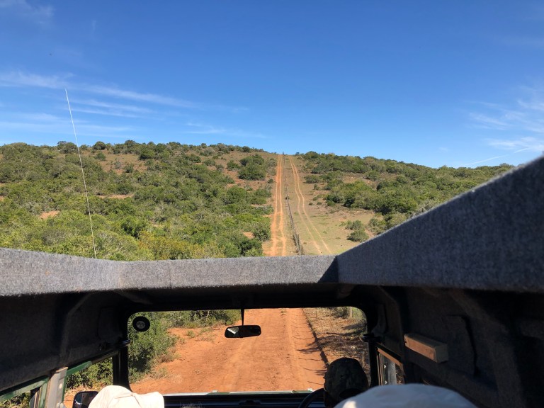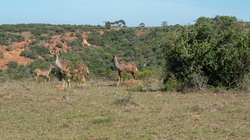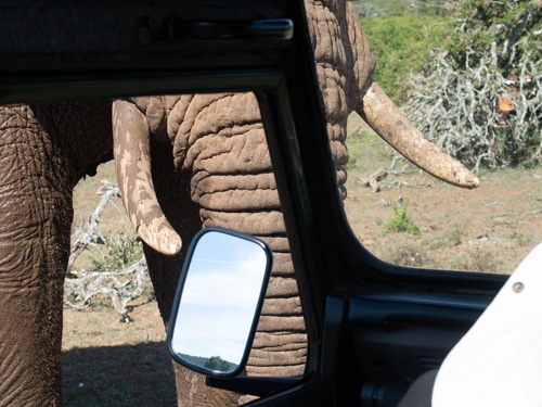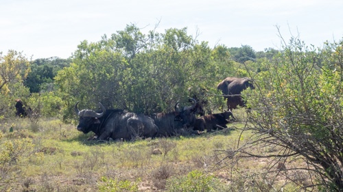 As we learn from our tour guide on the drive to the reserve, unfortunately, poaching continues to be a major issue for rhinos horns and elephants tusks. Secondly, hunting has all but decimated the wild animals in this eastern section of South Africa. Thus, ADDO Elephant National Park and various private game reserves were established many years ago to protect the wild animals, allowing them to still roam free and live in their natural-but-sized-constrained habitats. This includes, eating their natural food (not being fed) and roaming mostly where they want. Even the lions are allowed to hunt; managed hunting by the lions is used to cull the herds of their natural prey, a necessary trade off for modern survival of both predator and prey given the limited space available. Herd management is something we are familiar with since it is used to manage the American Bison population in the US, but in that case, the culling is done by man. Perhaps one day the Bison will be culled, more in accordance with Nature, by the growing population of wolves?