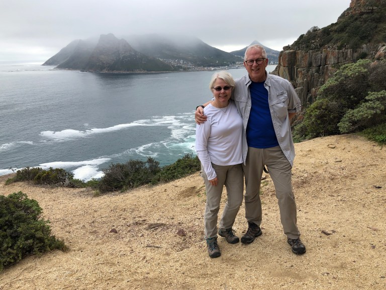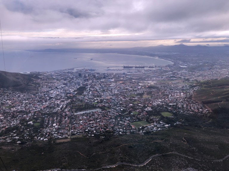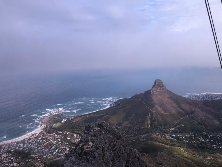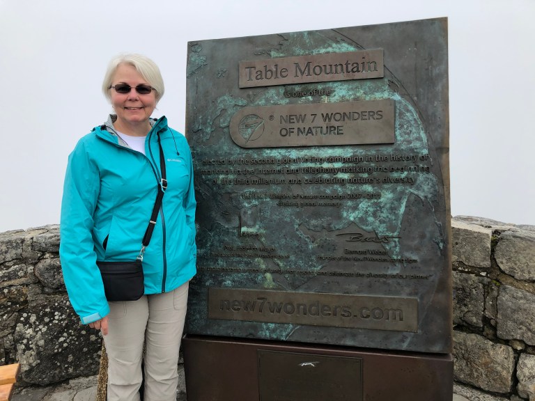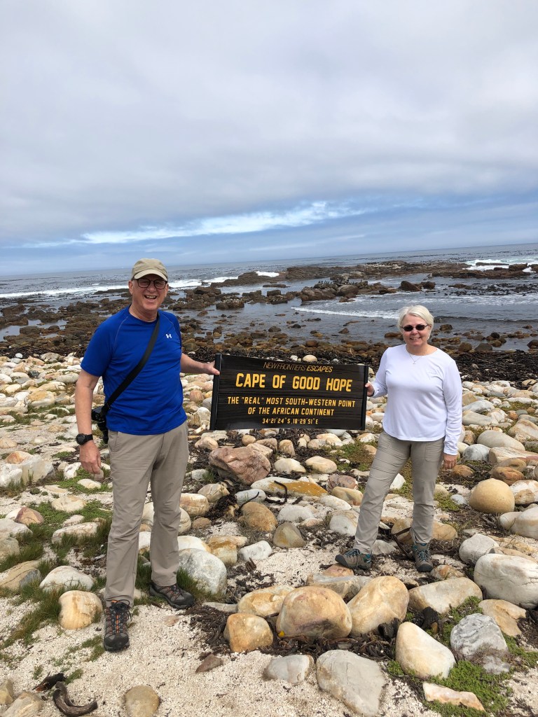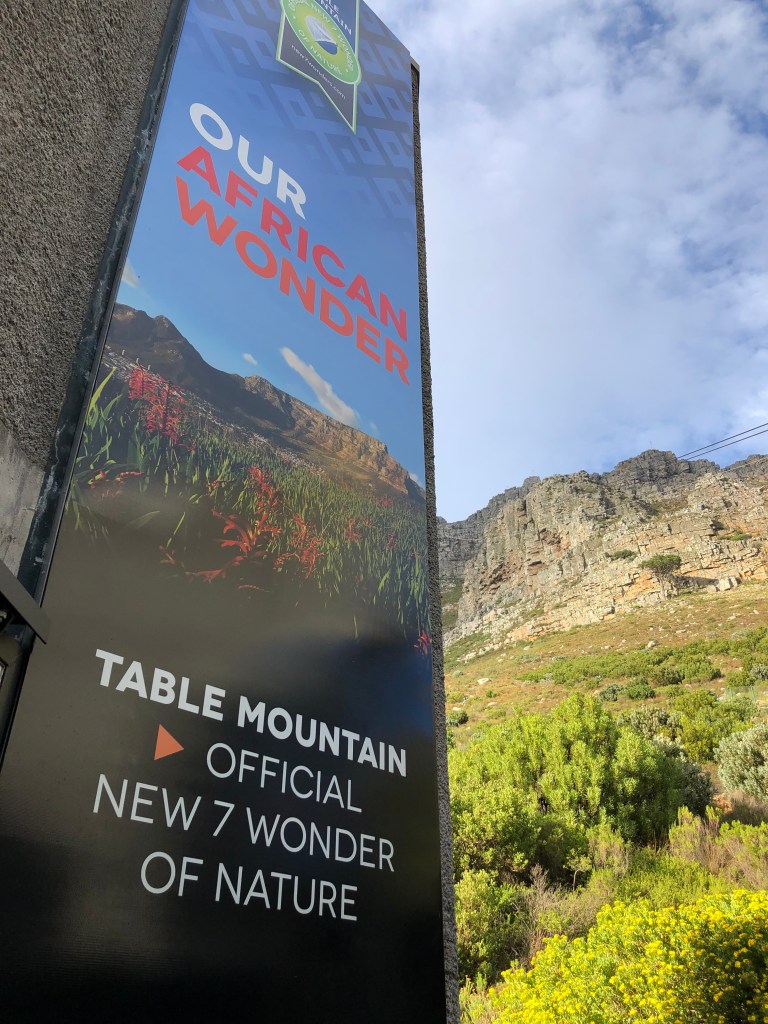 Today, we are up early and lucky because Table Mountain is not in the clouds this morning. Or at least until we get to the top, then the cloud cover creeps or is it floats in. Fortunately we did get some good pictures in the Cable Car on the way up. Now I’m sitting in their wi-fi lounge writing this blog and hoping to publish!