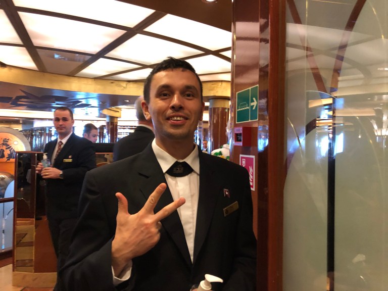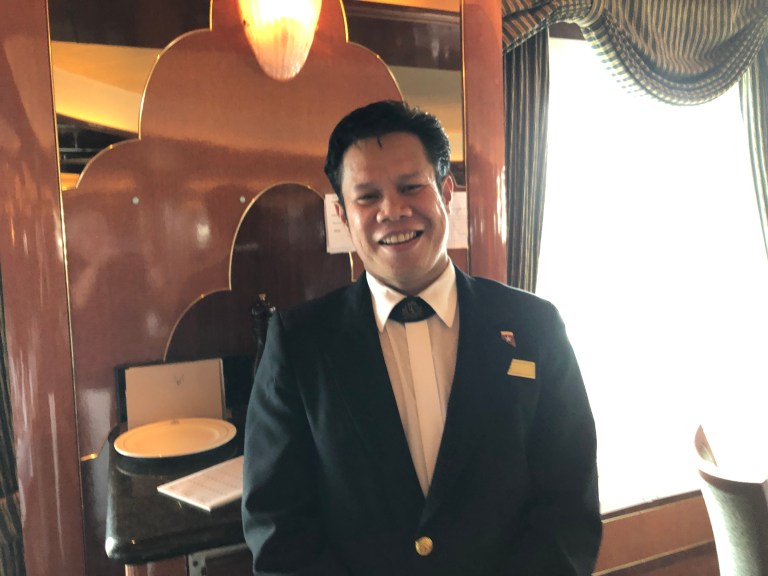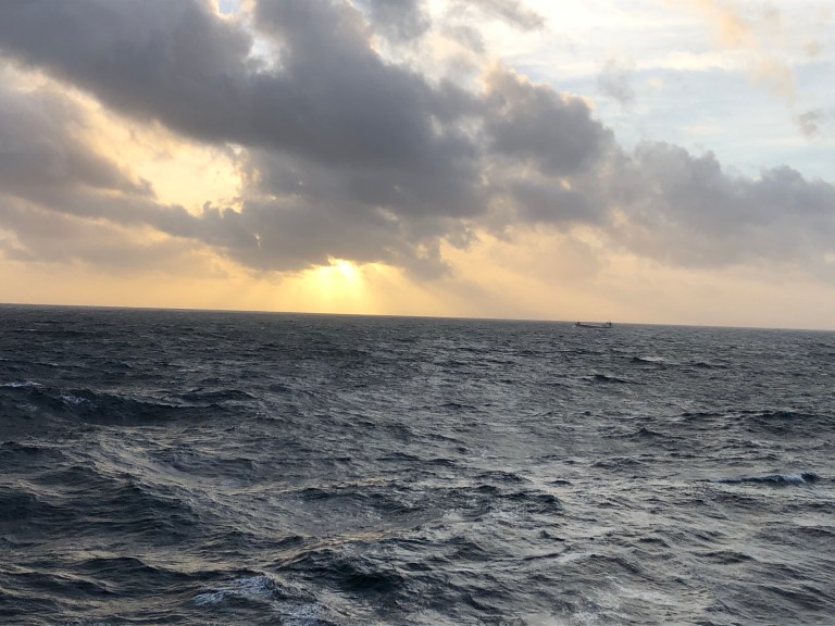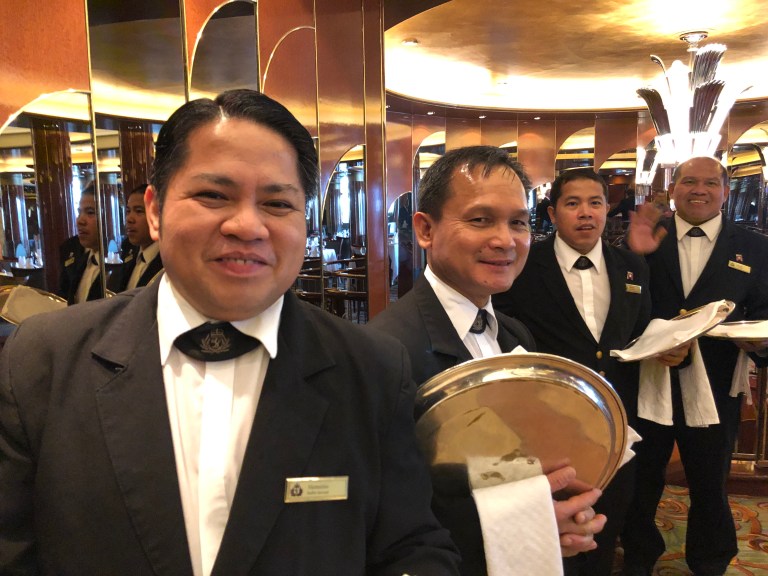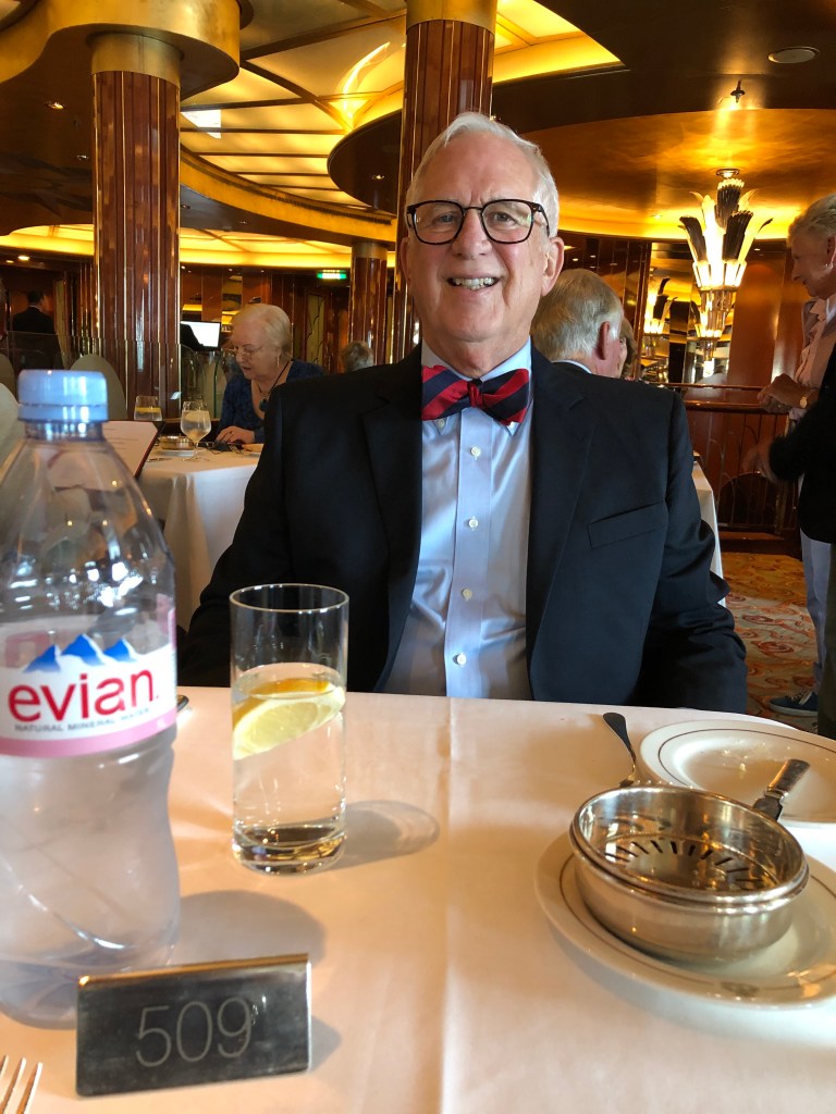We had such a great staff in the dining room providing excellent service. They will continue on the Queen Victoria and serve the next couple at Table 509. The sunset is coming and we are in the shipping lane of the English Channel. Great end to a cruise!